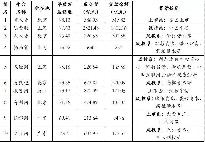 表12017年排名前十的P2P平台统计,无一是单纯的民营系