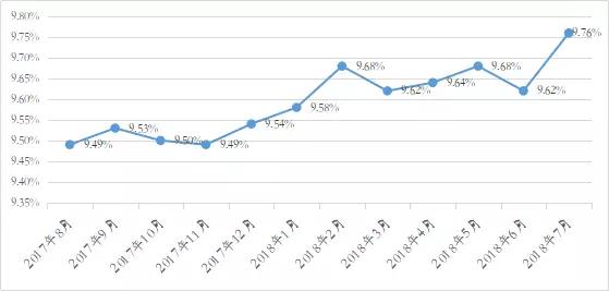 图7近一年中国P2P综合收益率在9.50%-10%区间