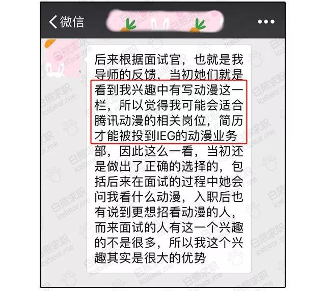 在膜拜了他的简历之后,我发现他除了出色的实习和项目经历以外,他还在兴趣爱好一栏里写上了“看动漫”。