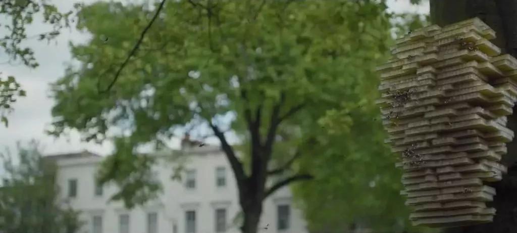 有一天,这种无害的小蜜蜂遭到利用,成了杀人工具:刚开始,它只悄悄地钻进家门,攻击受害者;后来,这些蜜蜂几乎成了希区柯特《群鸟》中的乌鸦和海鸥们,即使扑杀就近蜂巢,它们还是发了疯般地赶来,坚定地冲破防线,不杀死受害者誓不罢休。