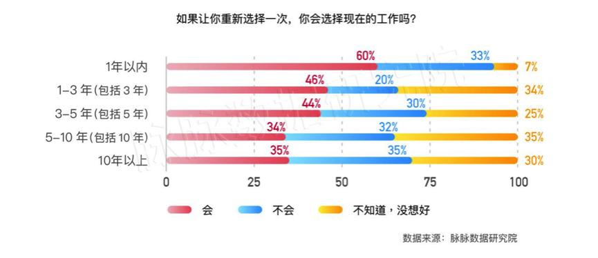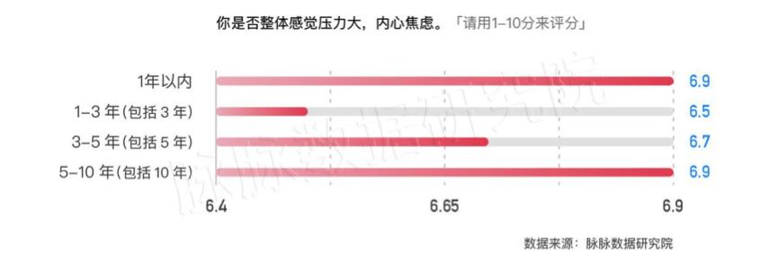 有一点可以确定,压力并不会随着时间的推移与金钱的增长而减少。脉脉的调查数据也确认了这一点,“每一个真实的现在,都曾经是你幻想的未来”。如同经济存在周期波动一样,人生不同阶段所面对的压力同样存在周期,毕业时面对从零开始的压力,五年后,会发现以前的解决方案会成为现在的压力来源。甚至到了十年后,有太多人想重新来过。
