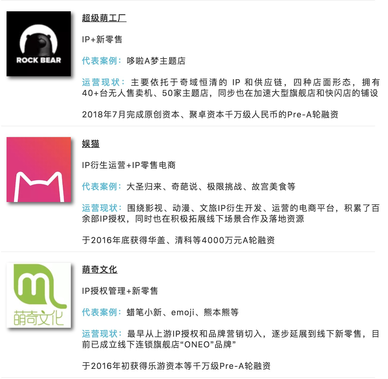 顾名思义即通过IP商品/产品化,连接场景与消费者。此领域主要企业分布如下: