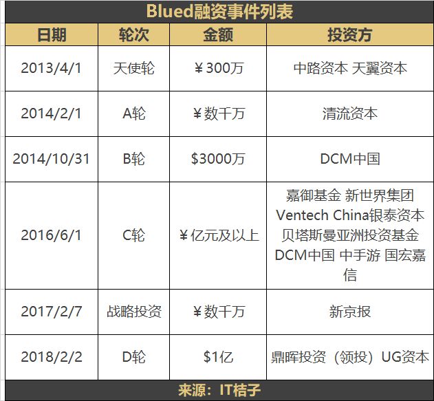 IT 桔子数据显示,Blued 成立于 2012 年 8 月,目前获得 6 轮融资,总融资额约 12.08 亿人民币。