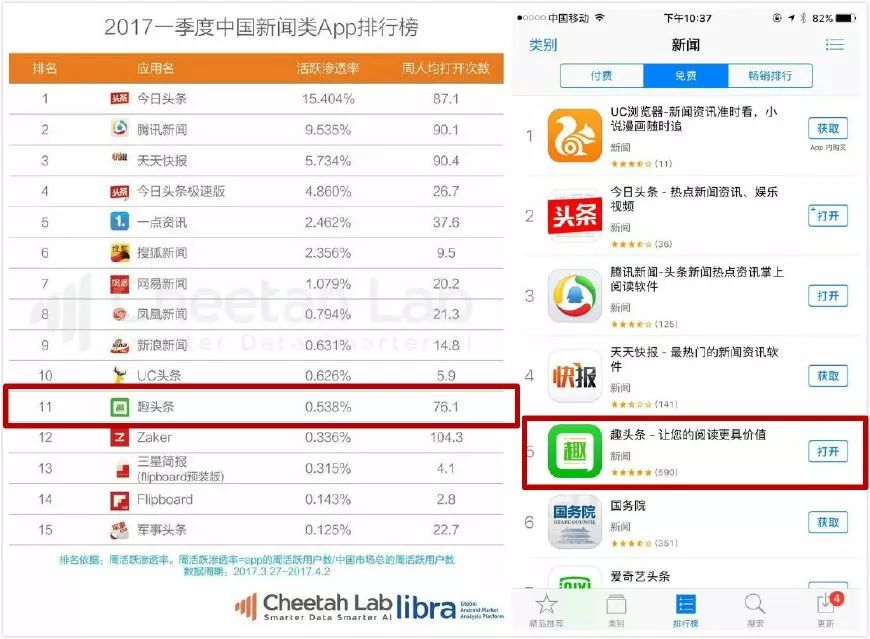 但随着趣头条浮出水面,这个市场又掀起了新的波澜。这家从三四线甚至更小的城市中杀出的创业黑马,身上带着“月活用户增长超500%”、“新闻app排名杀入前五”、“腾讯领投”、“估值超16亿美元”等光环加入战场。
