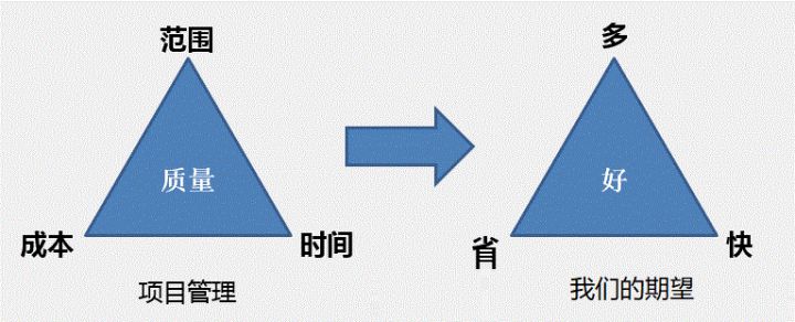 老板们都想项目完成的时间要快,完成的成本要低,完成后的质量要好。但能够完美做到以上三个要素的项目,少之又少,我基本没有见过。