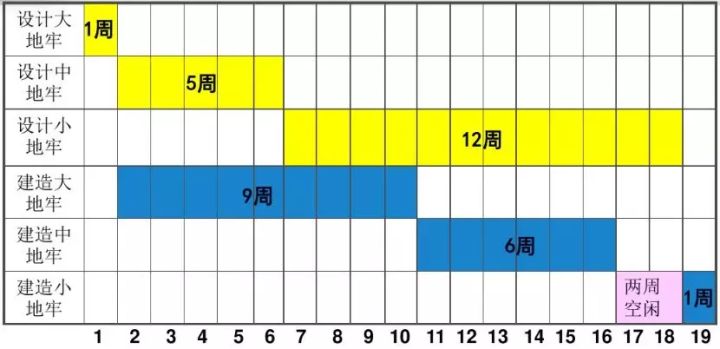 小的地牢很难设计(最快要12周),但是容易建 成(1周)