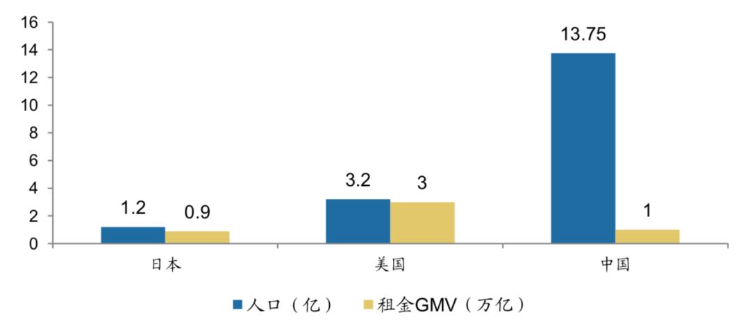 中日美总人口与租赁市场规模 (资料来源:链家研究院)