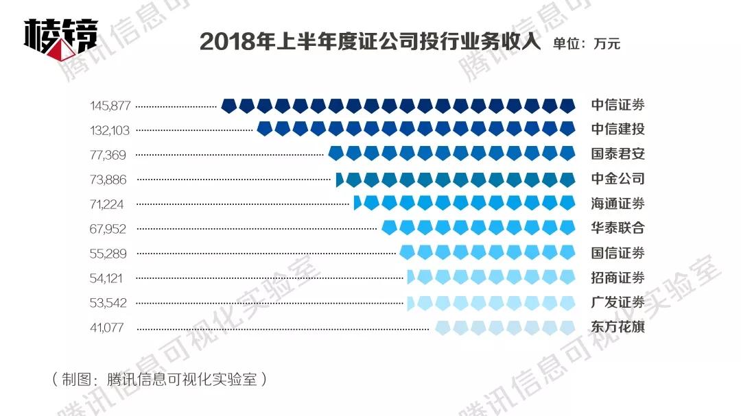 《棱镜》统计发现,投行收入前三甲—中信证券、中信建投和国泰君安,占前十家投行收入比重为46%。而前十家投的收入占131家券商的投行收入比达66.5%。