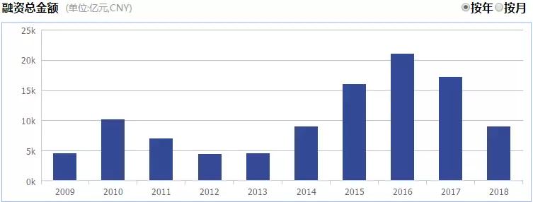 股权融资(包括IPO、增发、配股、公司债)总金额的对比,2018年数据截止至8月17日