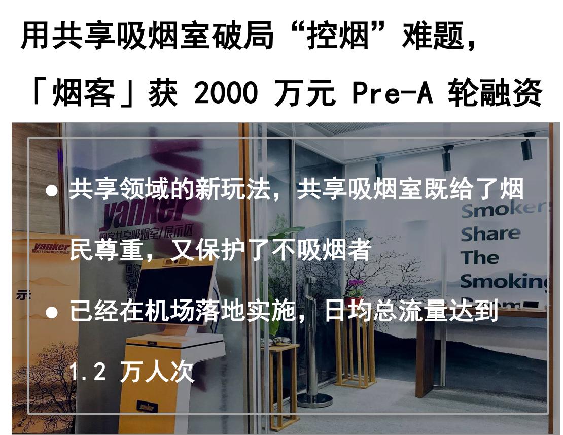 创投 24 小时 | 共享吸烟室是刚需吗;「什马出行」瞄准农村新能源出行市场