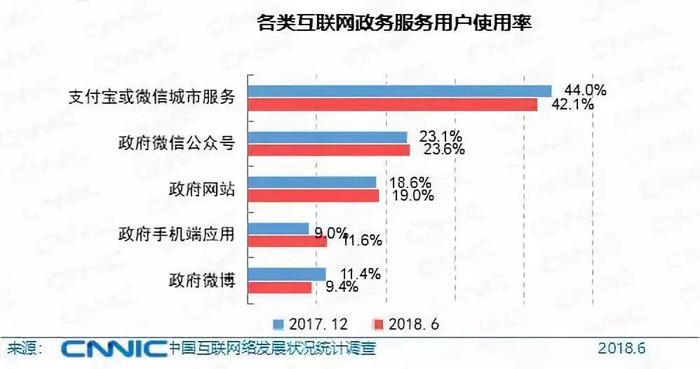 截至2018年6月,我国在线政务服务用户规模达到4.70亿,占总体网民的58.6%。