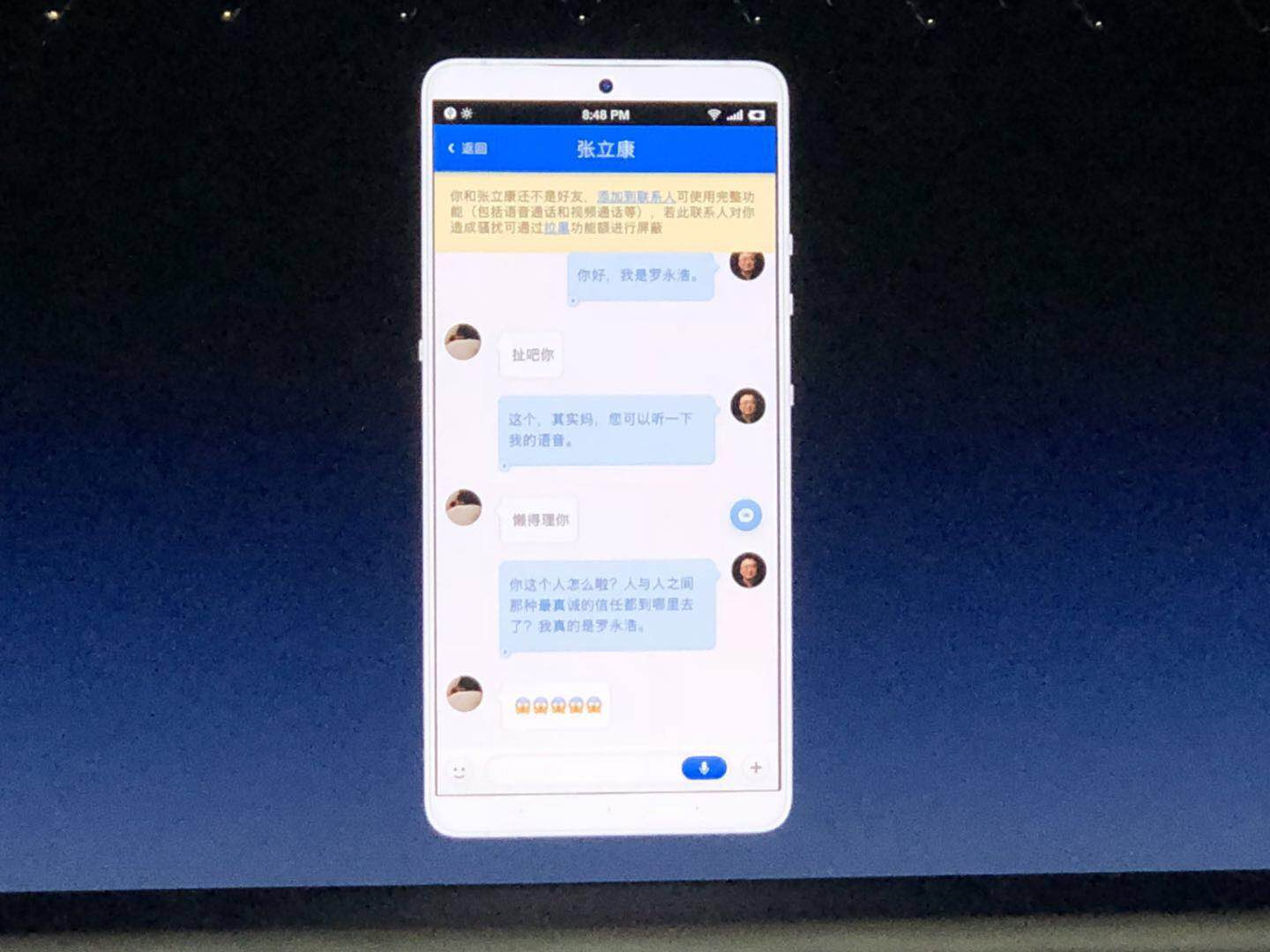 罗永浩在现场演示此功能,锤友回复:“扯吧你。”