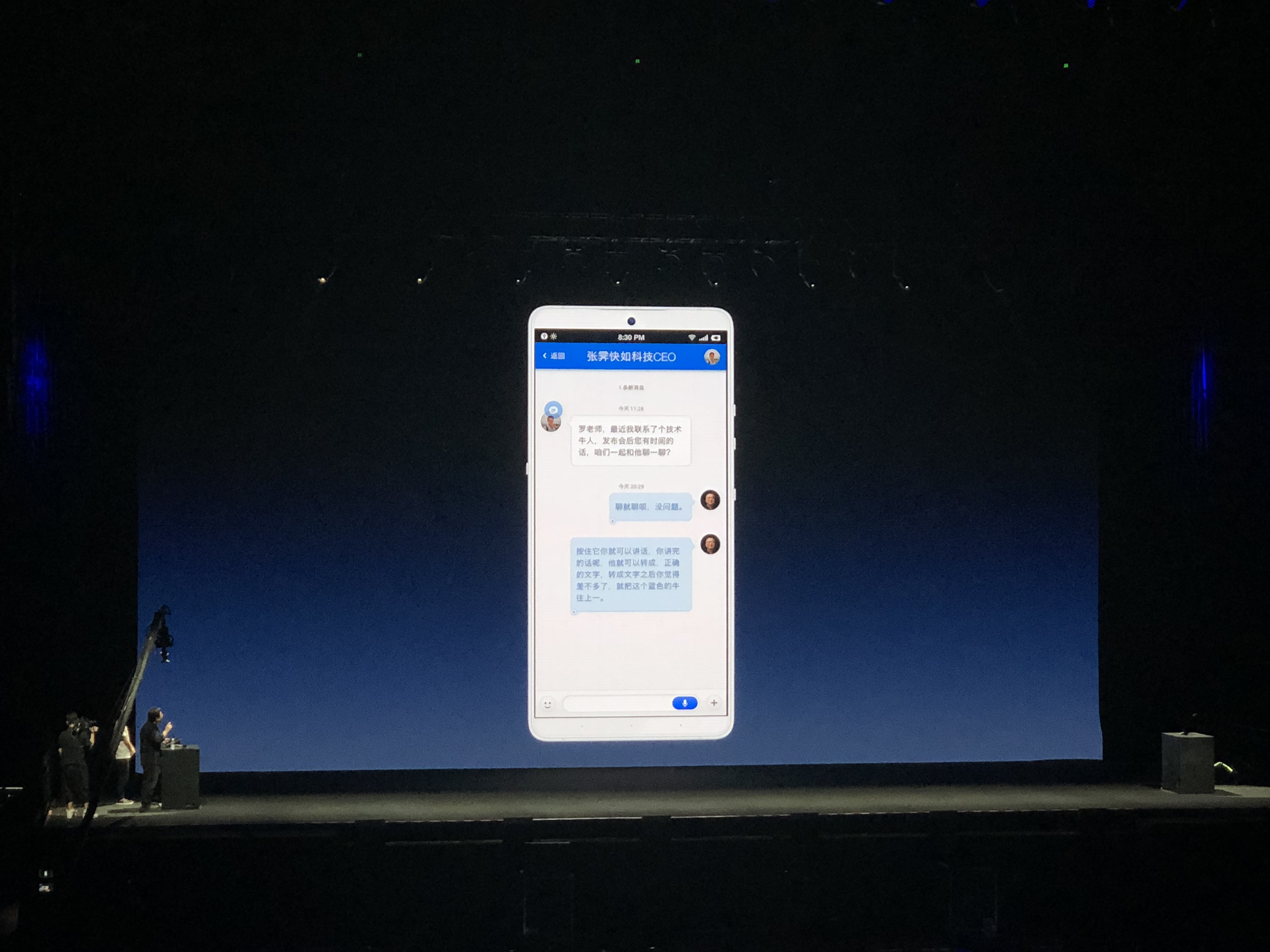 约好的19:30,但罗永浩还没出现。会场里有观众在议论:“你看我就说8点吧。”