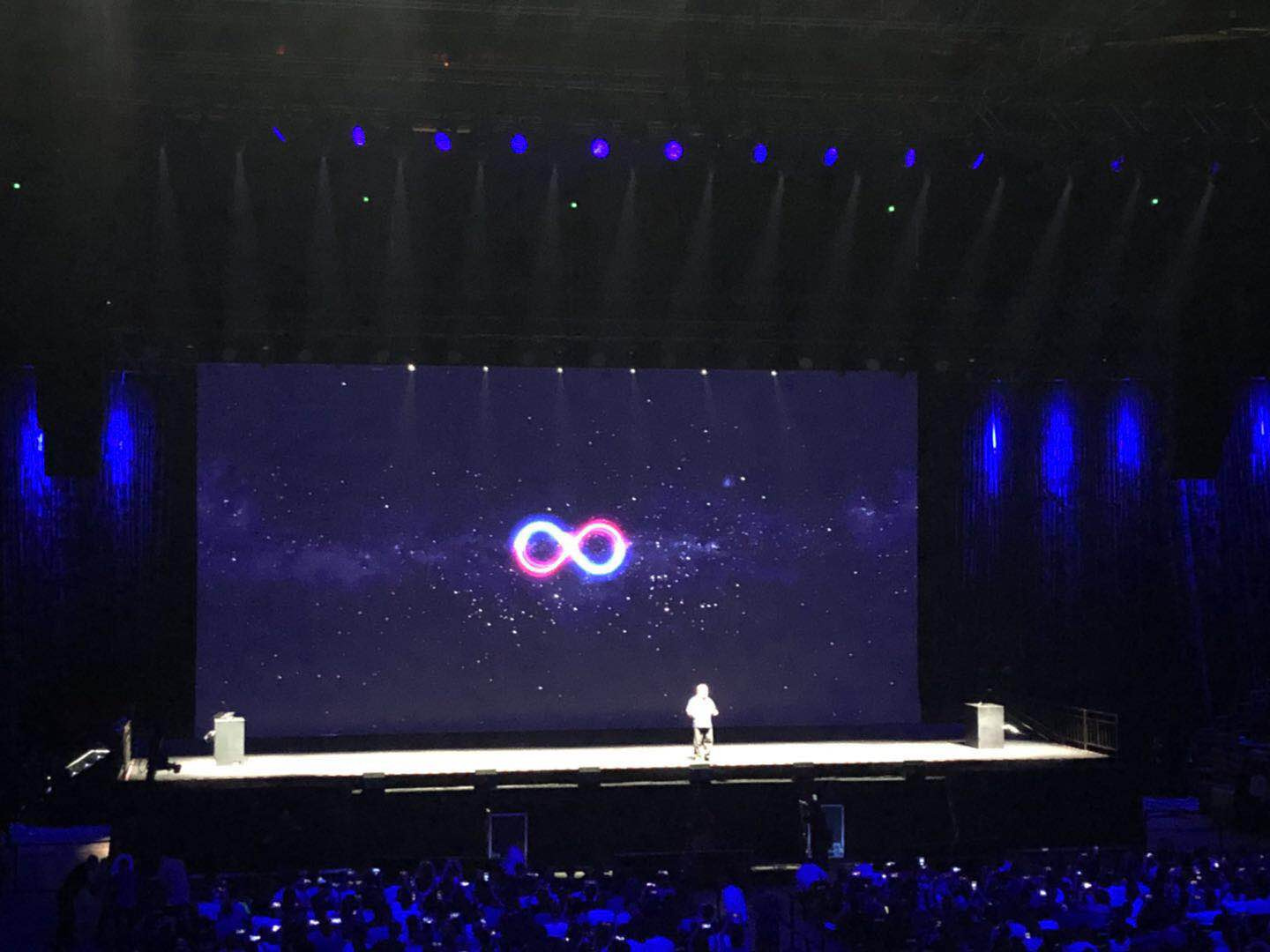 发布会场内大屏幕打出了无限符号“∞”。