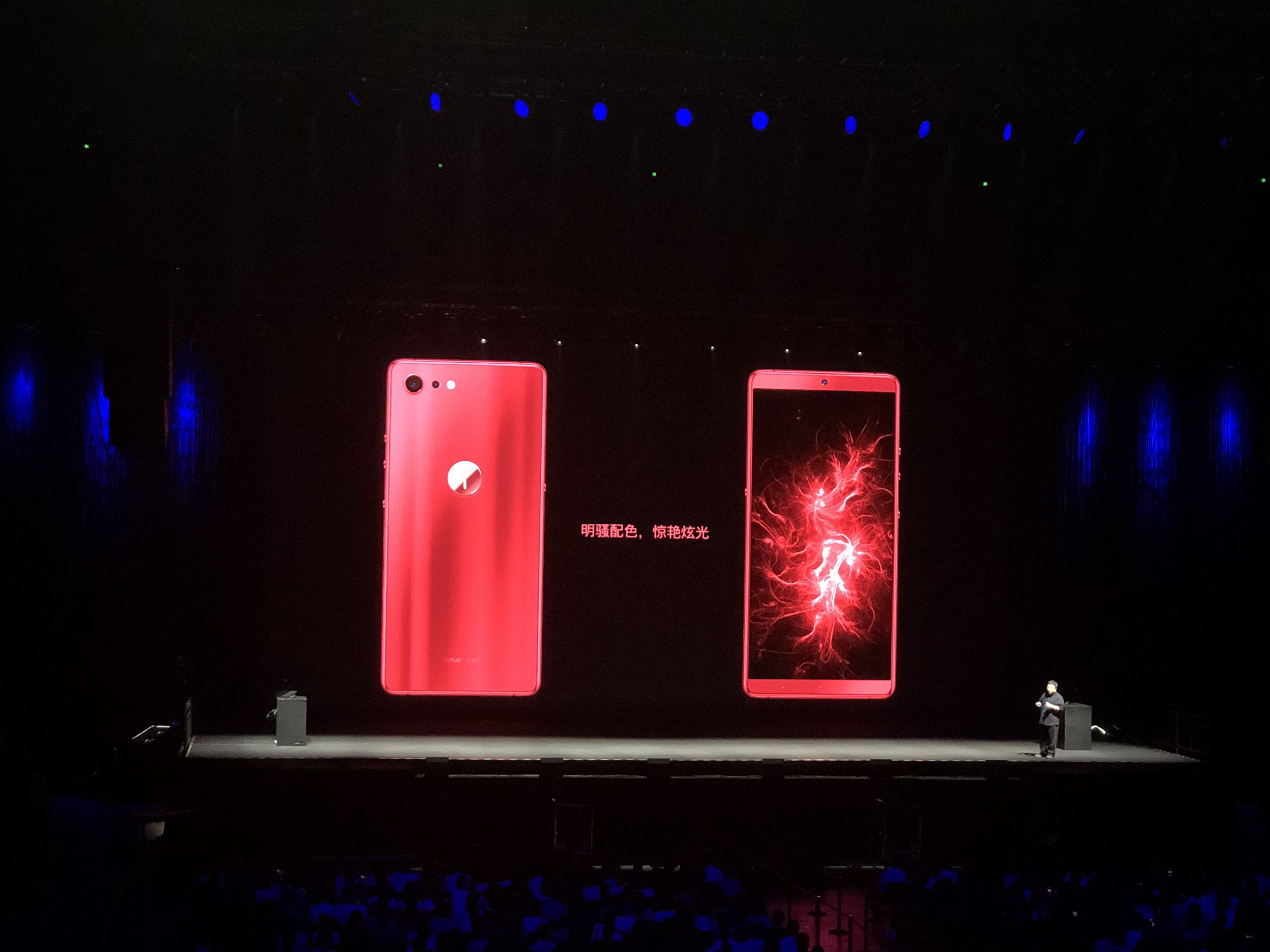 罗永浩表示,10月发布会上还将发布一些没人相信的产品,今天发布的是稳健型的产品。外形跟Pro 2差不多,主打炫光蓝和炫光红,另外还有经典色黑和白。相比Pro 2,2S厚度变薄了一点,去掉了侧面的金线。