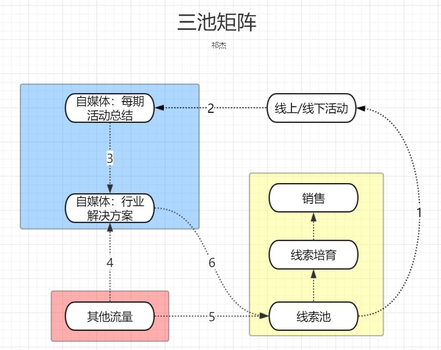 3.通过构建线索池,内容池,流量池的“三池矩阵”来落地内容获客。线索池目的是提高线索付费转化;内容池目的是拉新流量,清洗流量;流量池目的是承载起前端渠道流量,并为内容池和线索池提供支撑