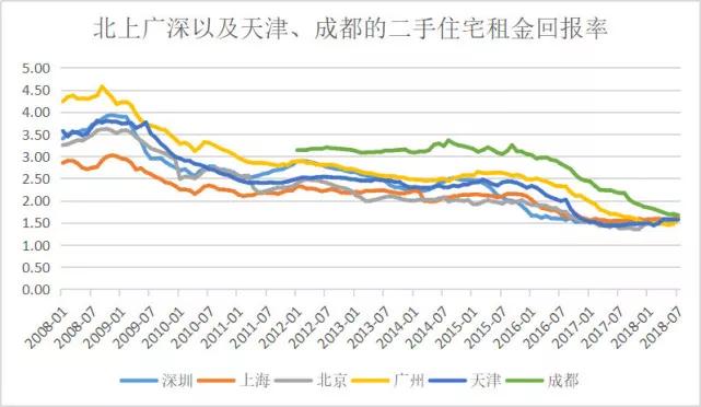 众所周知,由于过去几十年来房价持续大幅上涨,而租金的增速有限,我国的租金回报率相当的低(如下图)。适合做租赁的城市,租金回报率连房贷利息都兜不住。万科谭华杰曾对媒体表示,万科广州的某个自建物业公寓项目,其投资成本不计利息需要57年才能够收回来,根本算不过账来……
