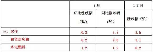 根据国家统计局北京调查总队的数据,2018年1~7月,北京市租赁房房租的涨幅为3.1%(如下表)。