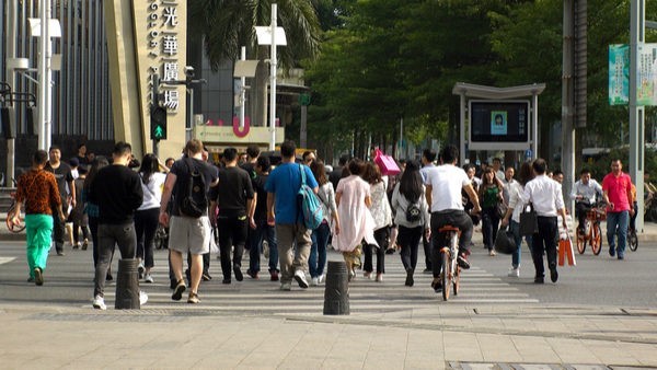深圳的一个路口部署了人脸识别技术,系统自动识别行人,然后将图像显示在右侧的屏幕上。