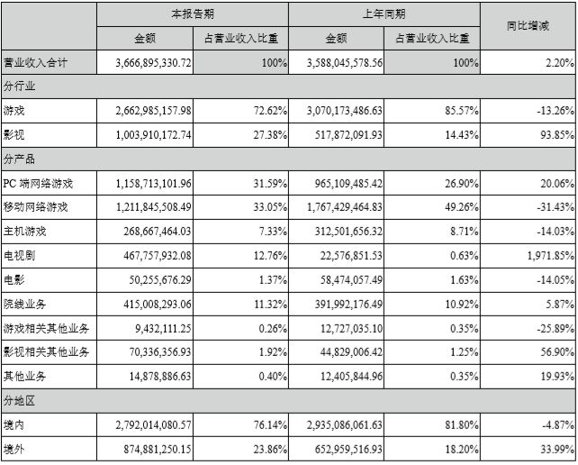 一、游戏业务营收近26.63亿元,占比72.62%