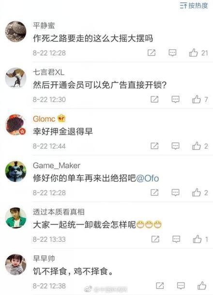 「ofo宣布在App上线短视频广告业务,用户扫码开锁时,可观赏5秒广告」8月22日