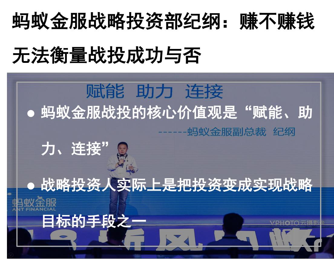 创投 24 小时 | 蚂蚁金服战略投资部:赚不赚钱无法衡量战投成功与否