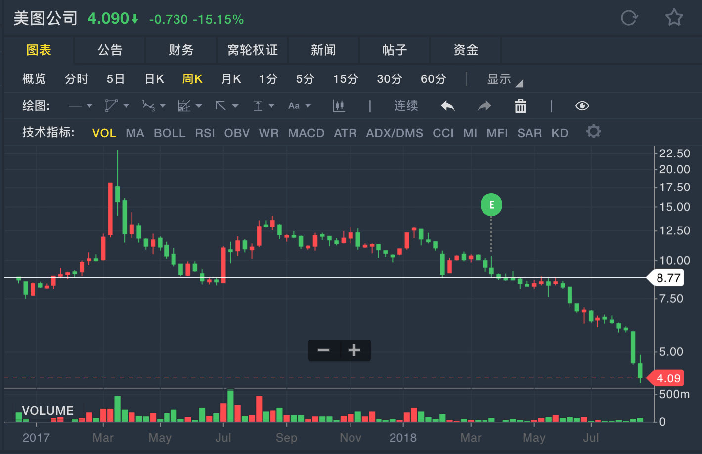 美图秀秀的母公司美图8月21日港股收盘后发布18H1财报,次日大跌15%。