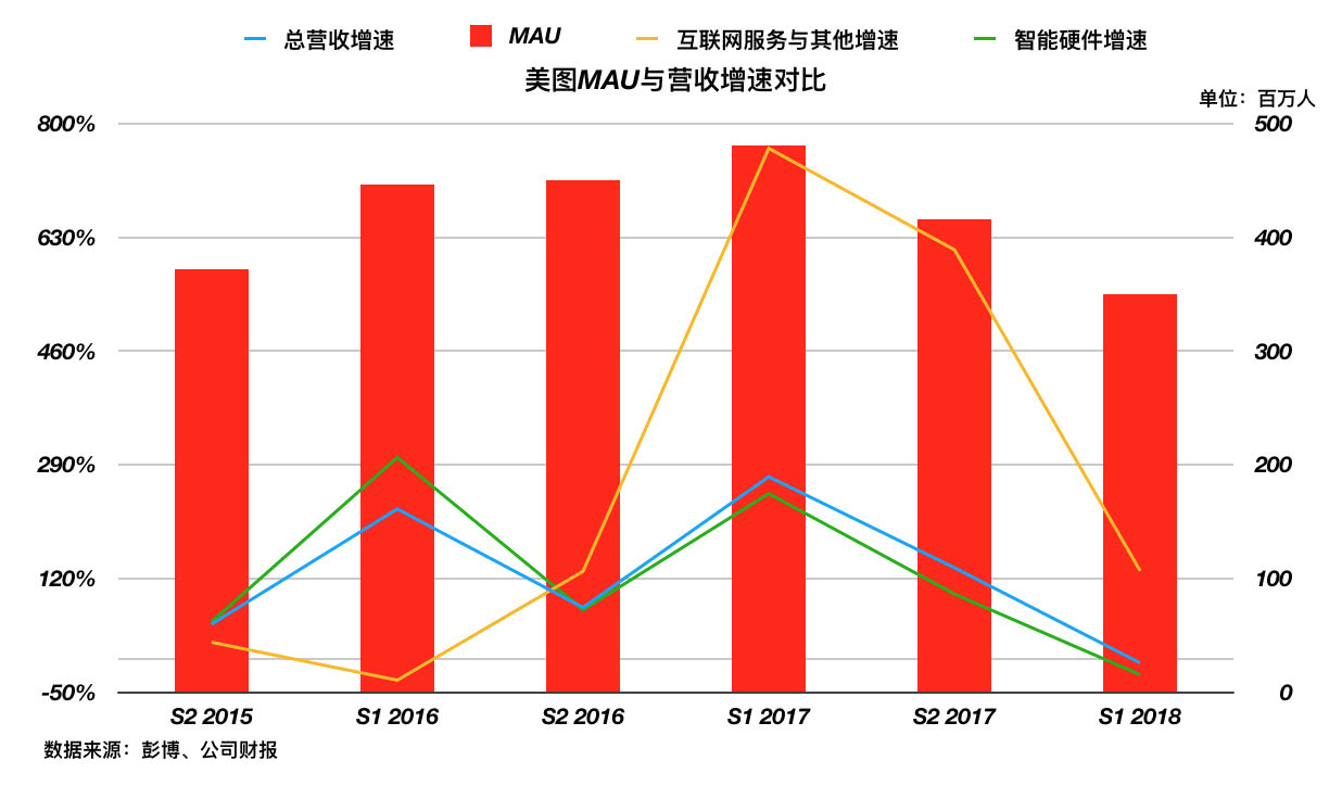 那么,如果作为互联网公司来看,有个数据就十分重要了——MAU。但遗憾的是,这方面美图表现并不好: