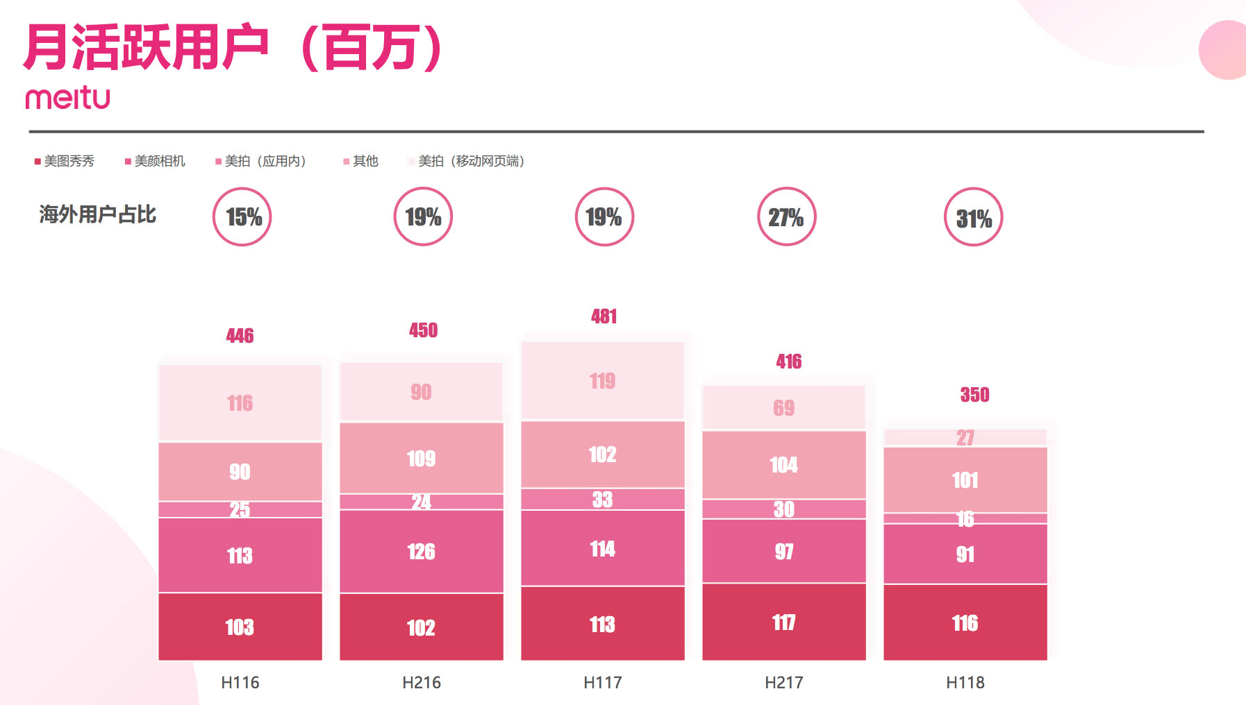 上图引自美图业绩PPT,可以看出用户下滑的势头非常明显。