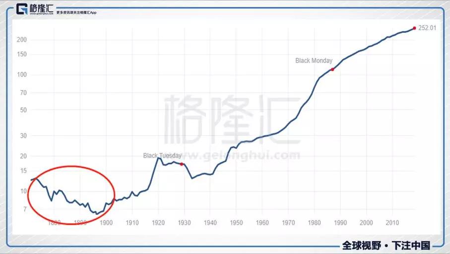第一个阶段,从1871年到1897年,这是个漫漫熊市。1871年1月1日,标普500指数是4.44,而1897年1月1日,是4.22,中间最低3.25,最高6.19。