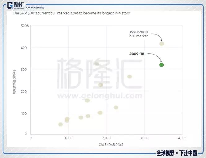 还不止于此,昨晚标普500追平了历史上最长牛市记录3452天(1990年至2000年),只要今天晚上美股跌幅不超过20%,那么刷新记录是分分钟的事情。