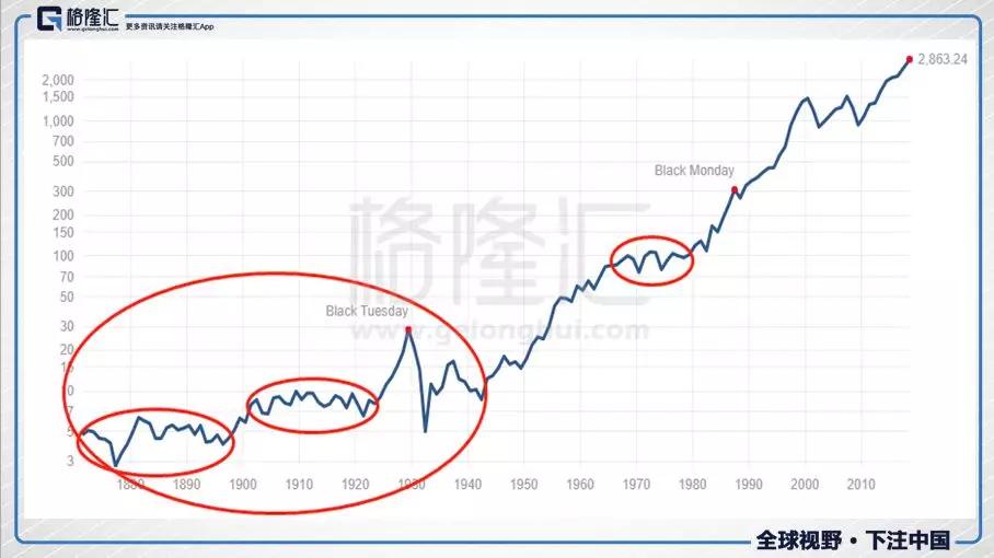 可以这样说,美股的真正牛市是二战之后才开始的。之前涨涨跌跌,也经常会发生指数回归的现象,与我们现在的A股类似。