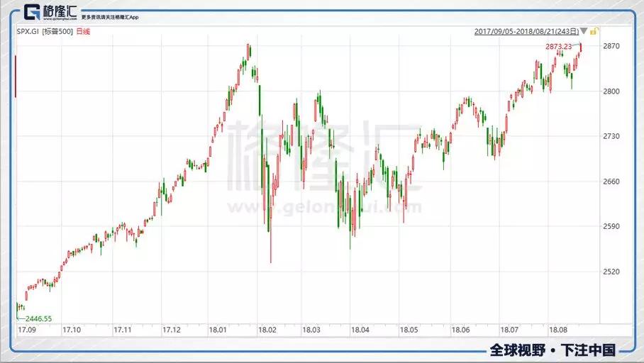 8月21日晚上,标普500盘中突破了今年2月的高点,刷新至2873.23点,创下了历史新高。道琼斯指数与纳斯达克指数也逼近前期历史新高,整个美股在历史高位上运行。