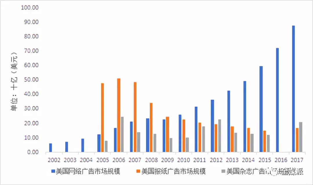 2002-2017年美国广告市场规模(资料来源:WIND、全媒派)