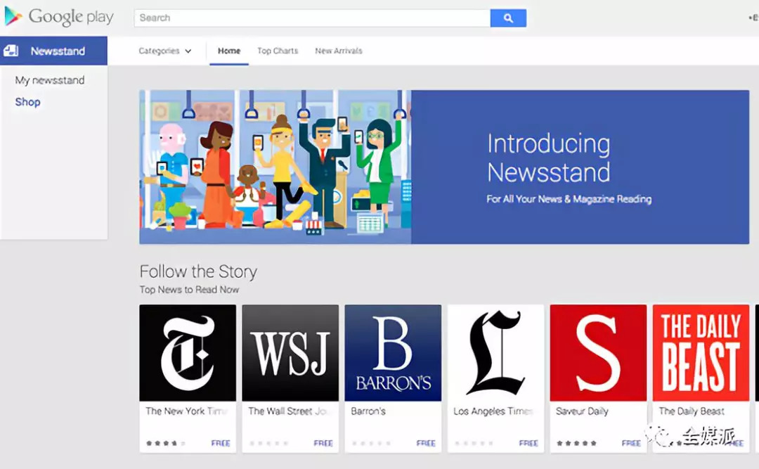 2011年,谷歌公布“Google One Pass”数字内容订阅服务,与第三方媒体进行联姻。在该服务下,用户可以通过谷歌支付系统Google Checkout快速订阅由第三方媒体推出的付费内容,同时也可以在不同的设备上登录访问数字内容。这一服务可以使媒体免于创建独立的支付和登录系统,提高用户订阅比例。而谷歌则从应用One Pass付费系统的媒体中抽取10%的收入分成,在征得用户同意后,谷歌还将获取用户姓名、通信地址及电子邮件地址等信息。