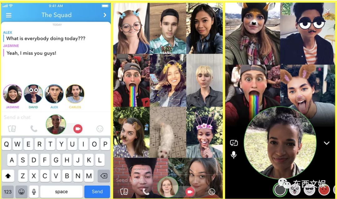 Snapchat带有AR滤镜的小组群聊功能在4月就已推出,可惜在8月就被Facebook的通讯应用Messenger照搬,初创科技公司Tribe也有类似的视频群聊玩游戏的功能。