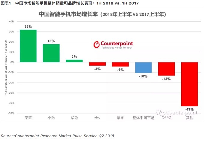 以下为原文报告:Counterpoint:2018上半年中国智能手机市场分析