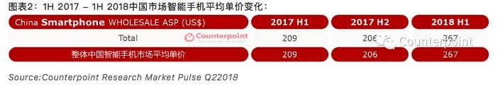 另一上半年中国智能手机市场的明显趋势是,手机单价在逐步上涨。中国智能手机市场平均单价更是从同期的209美元增长到267美元,增长率超20%。而苹果在出货量减少的情况下,依靠单价超过8000元的iPhone X,营收依然取得增长。相比之下,去年整体基本是保持平行的状态,价格是在今年上半年猛然起势的。