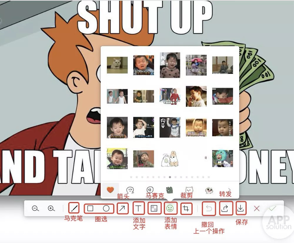 图片的简单编辑功能在手机上也可以使用,虽然功能没有在电脑上这么强大,但裁剪、添加文字和表情都可以完成。
