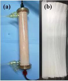 图2 (a)为血液透析的核心部件:透析器;(b)透析器的组成部分:中空纤维膜。