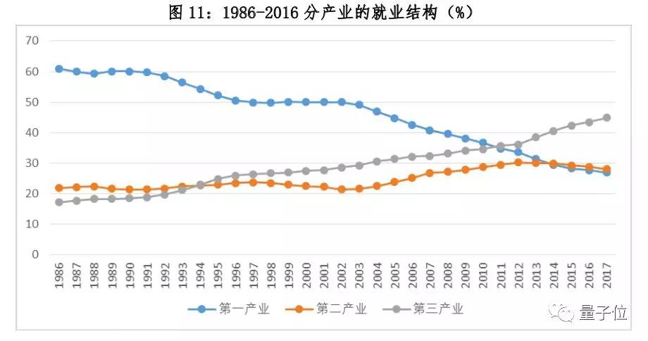 虽然目前制造、金融类产业的一些低技能职业首当其冲受到人工智能 技术的替代作用影响,但是服务业的劳动力规模却表现出上升的趋势。