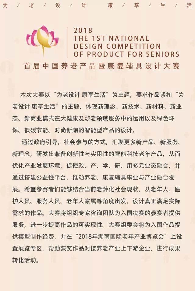 征集令!首届中国养老产品暨康复辅具设计大赛作品征集中!