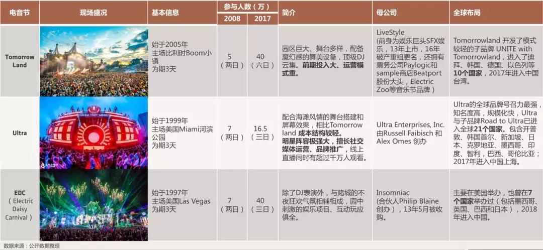 国外的电音节历史悠久,品牌林立,头部品牌明星效应显著。