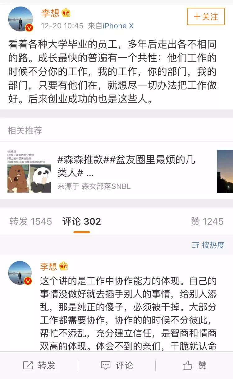 前几天,汽车之家创始人 @李想 的微博截图刷屏: