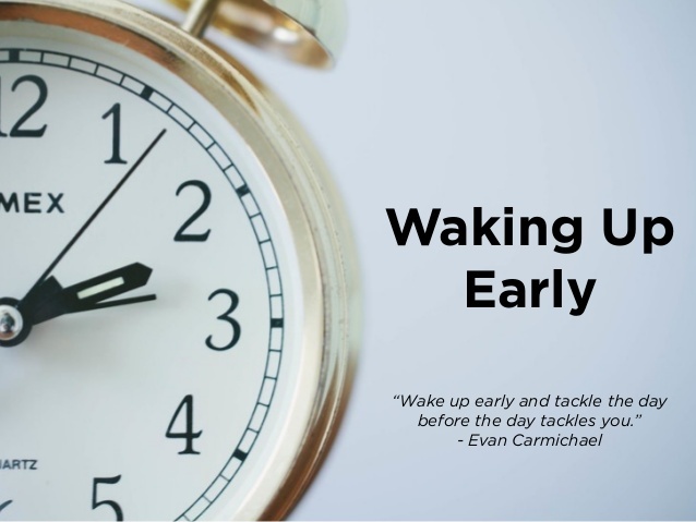 早起是很多成功人士的生活习惯。起得早并不是目的,做一个高效的早起者才是目的。时间管理专家劳拉·范德卡姆曾对20位企业高管做了一项调查。其中90%的人在工作日六点前就会起床。比如,百事CEO卢英德四点起床,不到七点就到办公室;迪士尼CEO鲍勃·伊格尔四点半起床阅读;Twitter CEO杰克·多西五点半起床跑步。
