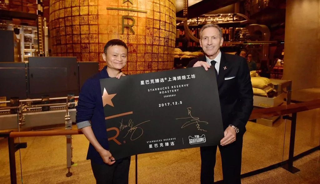 星巴克与阿里巴巴在新零售上的合作,其实去年就初见端倪,去年 12 月海外首家咖啡烘焙工坊及臻选品鉴馆在上海开业,这也是星巴克全球最大的门店,其中就有不少阿里巴巴的身影。