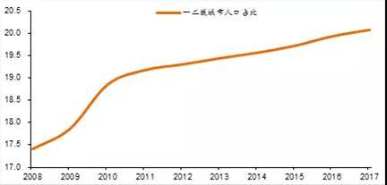 长期来看,人口从农村向城市、从小城市向大城市流动,是全球各国城镇化发展的一般规律,我国也是如此。在十年前,我国一二线大中城市人口占比只有17%,而截至去年末已经突破了20%;从人口增速来看,过去五年一二线城市常住人口增速都在1.2%以上,而全国其他地区的增速不到0.4%。在农村地区、小城市和大城市的软硬基础设施差距较大的情况下,人口向大中型城市集中仍将是城镇化发展的趋势。