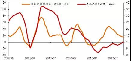 从另一个角度看,以往房地产销售领先投资大概半年左右,但是这一轮房地产销售增速从2017年初就开始大幅下滑,但是直到现在房地产投资增速不降反升,销售领先投资的规律似乎“失灵”了。