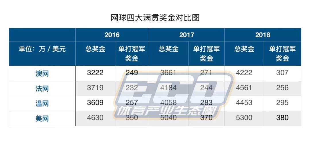 俗话说“舍不得孩子套不着狼”,球星是赞助商的宠儿,更是票房的基石,高额奖金自然是最好的“吸星大法”。在这里放个小彩蛋,说完收入,再对比下“开销”,来看看2016-2018三年,四大满贯的奖金对比。