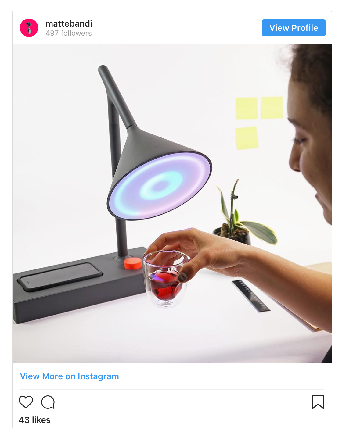 灯的基座上有一个放手机的槽。如果一段时间不碰手机,就有灯光秀作为鼓励。